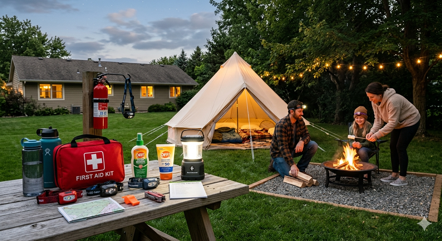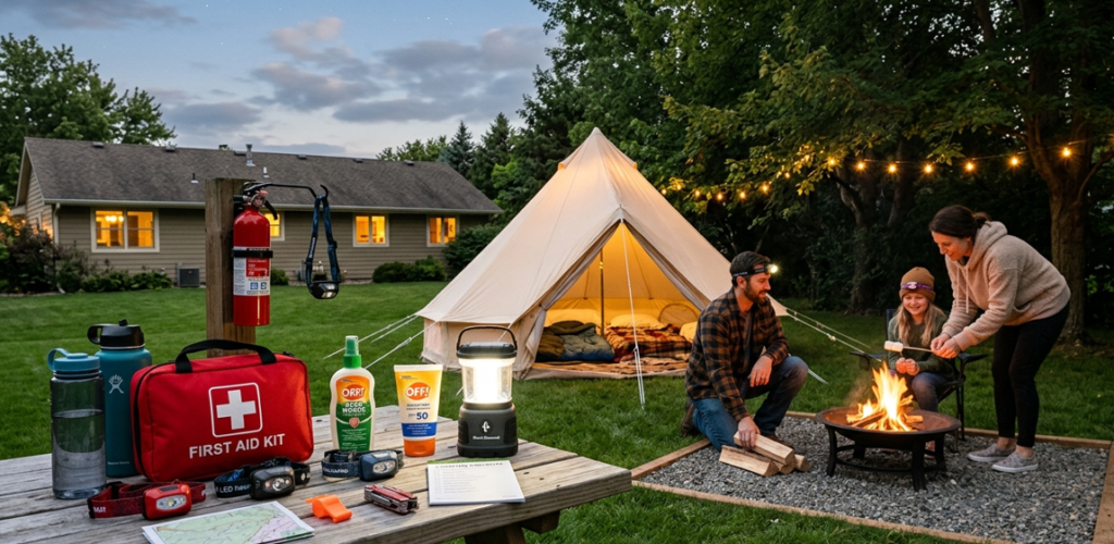 Communication. Even in your backyard, tell someone inside the house your plan — especially if kids are involved. A simple note on the kitchen counter (“We’re in the backyard tent, back inside by 7 a.m.”) takes ten seconds and eliminates confusion if something unexpected happens overnight.